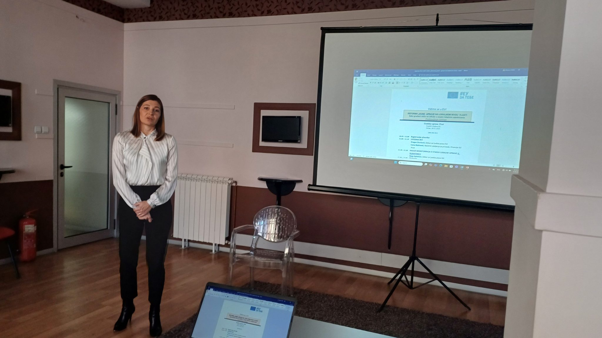 Nakon uvodnih obraćanja Ivane Malinović, Načelnice odeljenja za privredu i finansije GU Pirot i Dragana Đorđevića, predsednika Odbora za ljudska prava Niš, na prvom panelu predstavljen je izveštaj ,,Stanje javne uprave Pirot,,.
